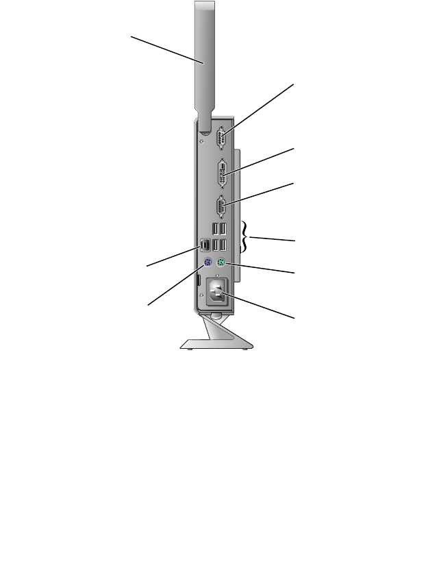 1 antenna senza fili (opzionale) 2 connettore della porta seriale