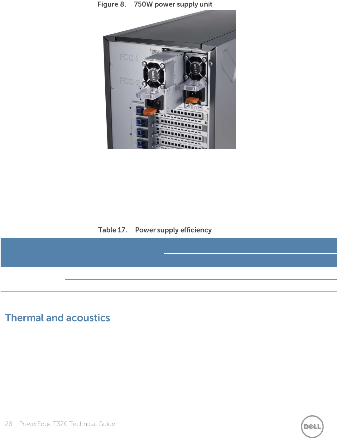 Dell PSUs have achieved Platinum efficiency levels as shown in Table 17.
